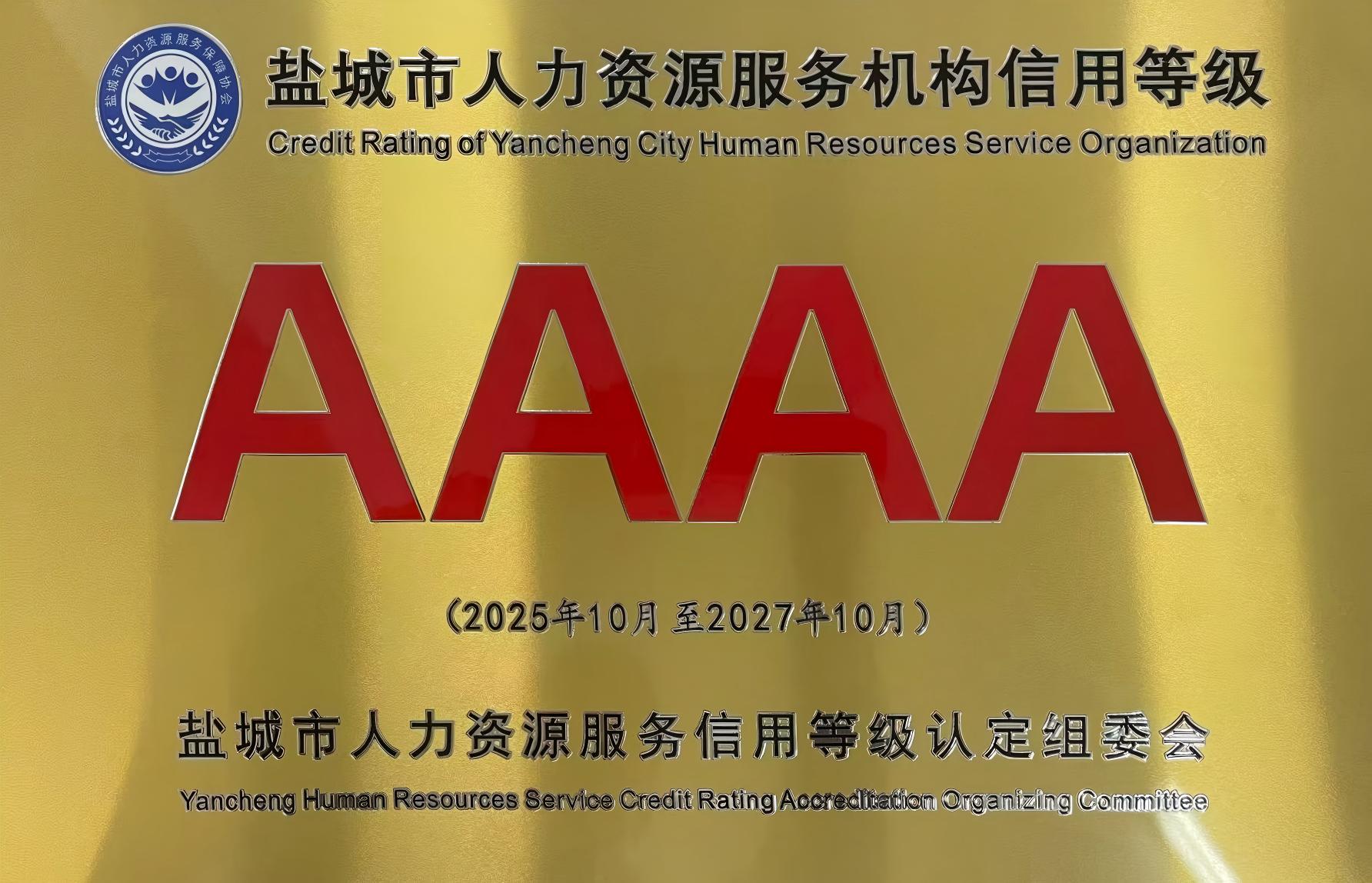 近日,經(jīng)鹽城市人力資源和社會保障局與鹽城市人力資源服務(wù)協(xié)會聯(lián)合評審并公示,立新人力資源服務(wù)有限公司憑借卓越的服務(wù)品質(zhì)、規(guī)范的運營管理和良好的社會聲譽,成功獲評“鹽城市4A級人力資源服務(wù)機構(gòu)”。